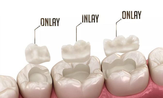 It is atype of dental restoration used for repairing greatly damaged or decayed teeth. Inlays are used to fill the areas within the cusps of tooth while onlays large area. They are customised in dental lab and then the dentist bonds it to the tooth. It is highly durable and aesthetic.